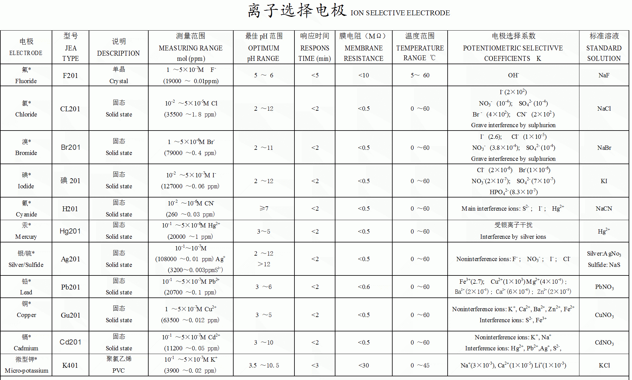 - 鉀離子電極K401